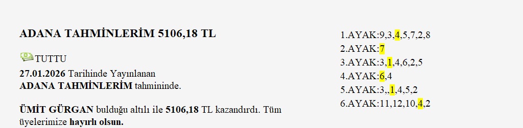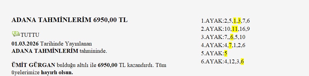 Dün 56.800 TL veren Adana altılısını doğru kurguyla haneye yazdırmayı başardık. Açıkçası son dönem dünyaları kaçırdık. Ancak böyle bir ikramiyenin artık geleceği aşikardı. Evet biraz gecikti ama sonunda o zinciri kırmış olduk.