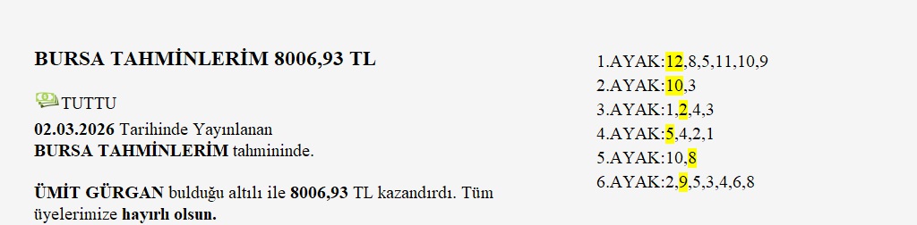 BURSA TAHMİNLERİM - ₺14.257,30